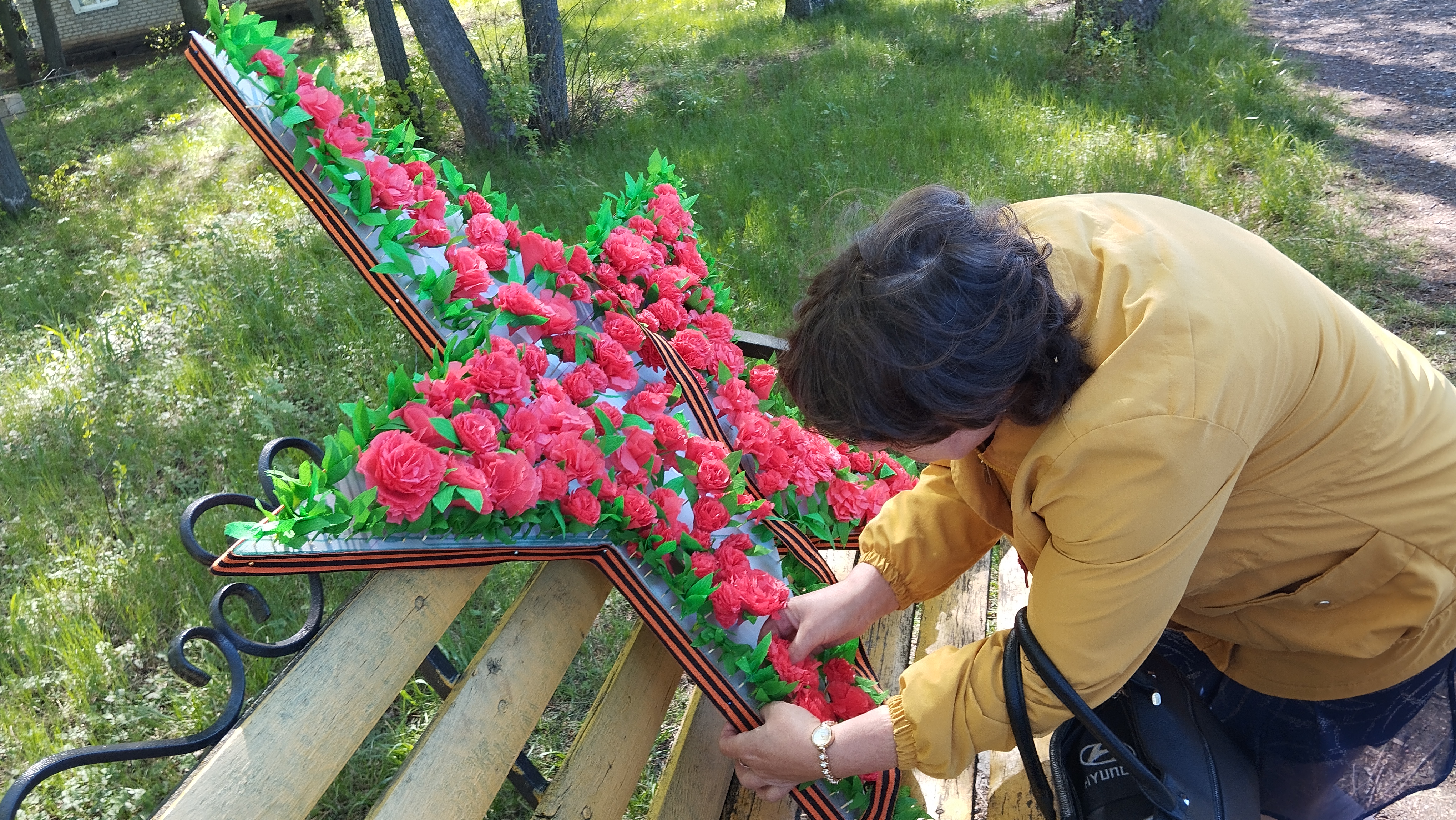 Школа организовала интерактивную площадку, где каждый желающий мог написать письмо солдату СВО и украсить гвоздикой звезду Победы.