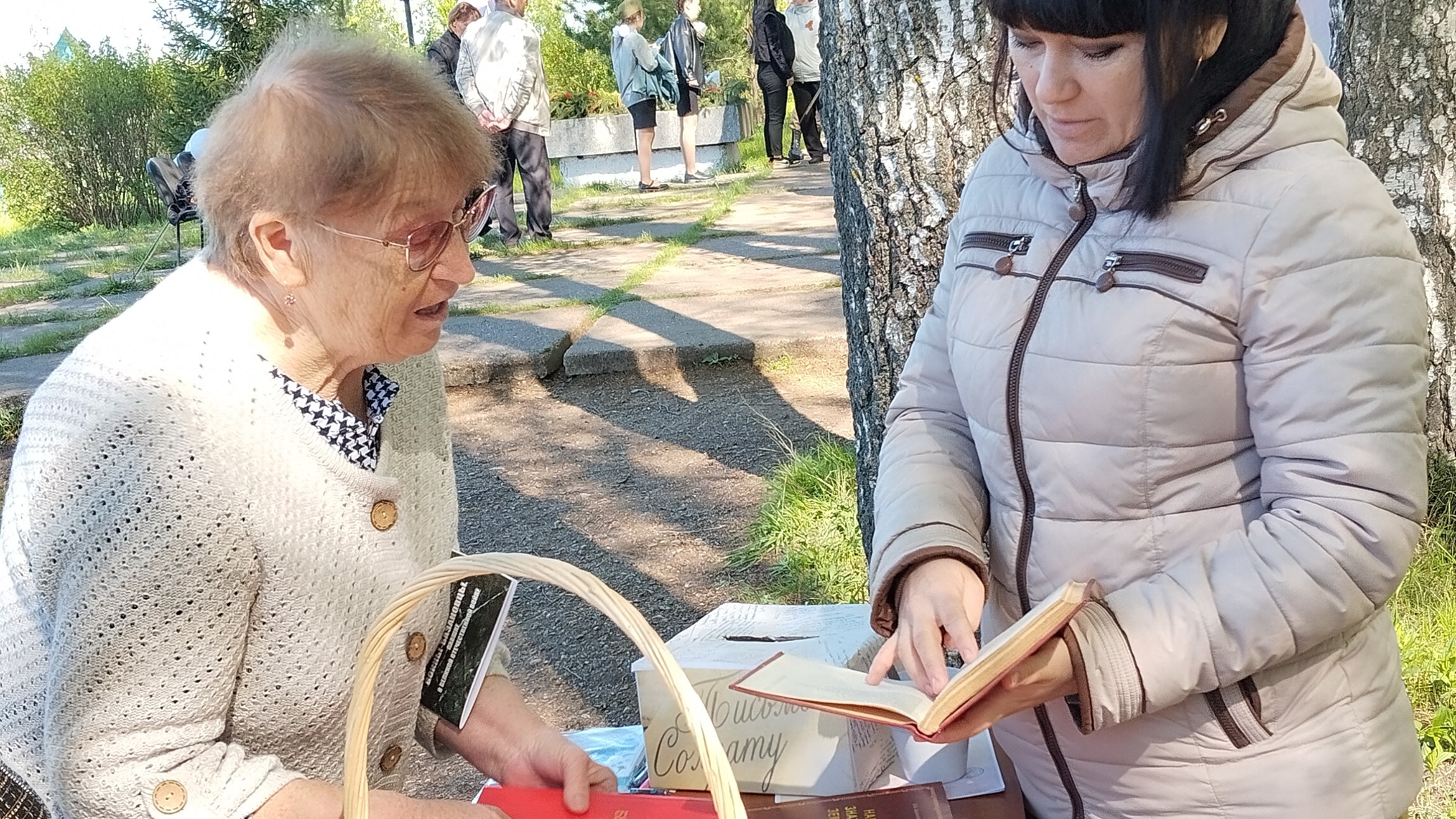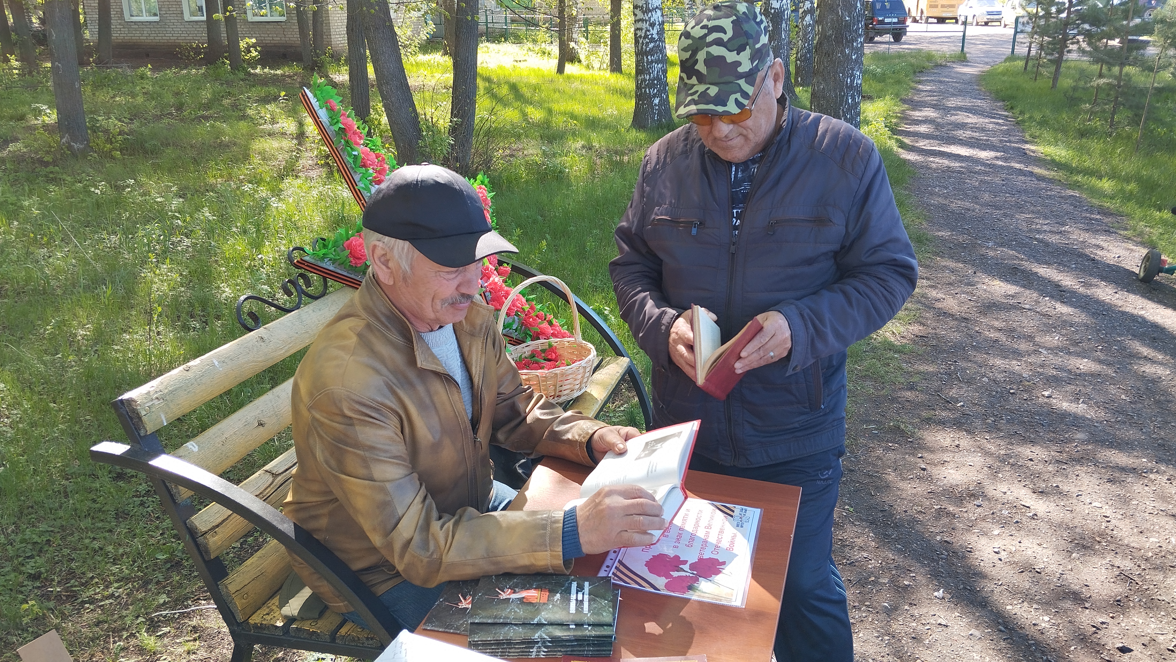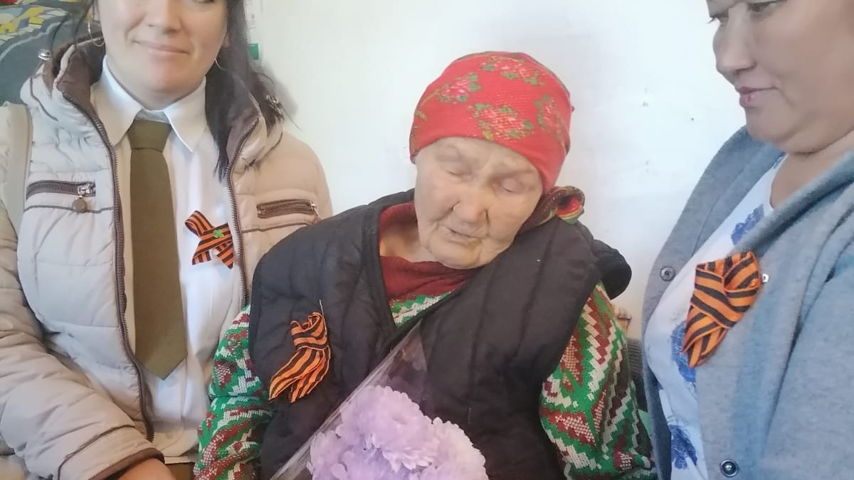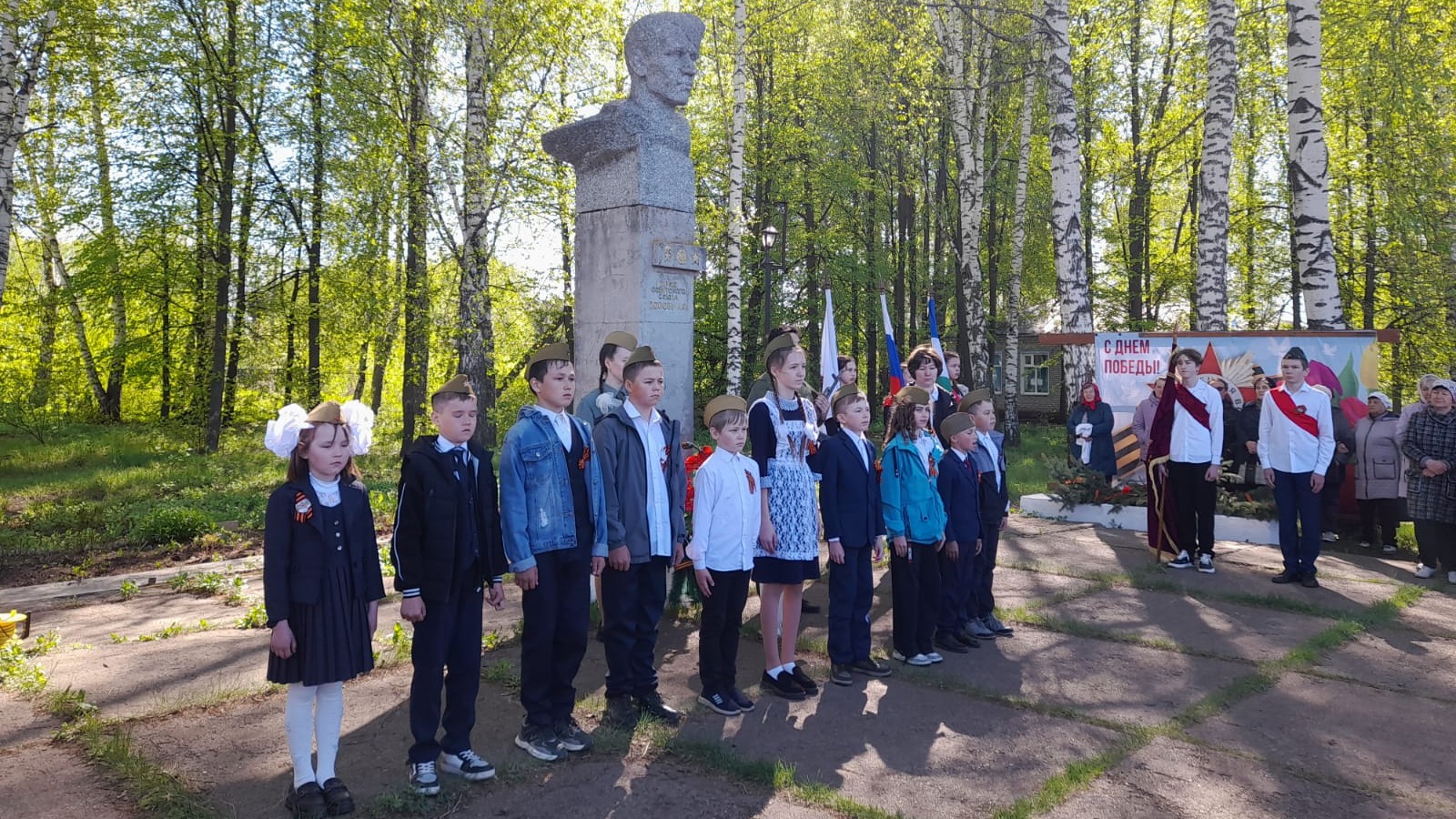 Сотрудники сельских организаций и школьники поздравили присутствующих с Днём Победы.
